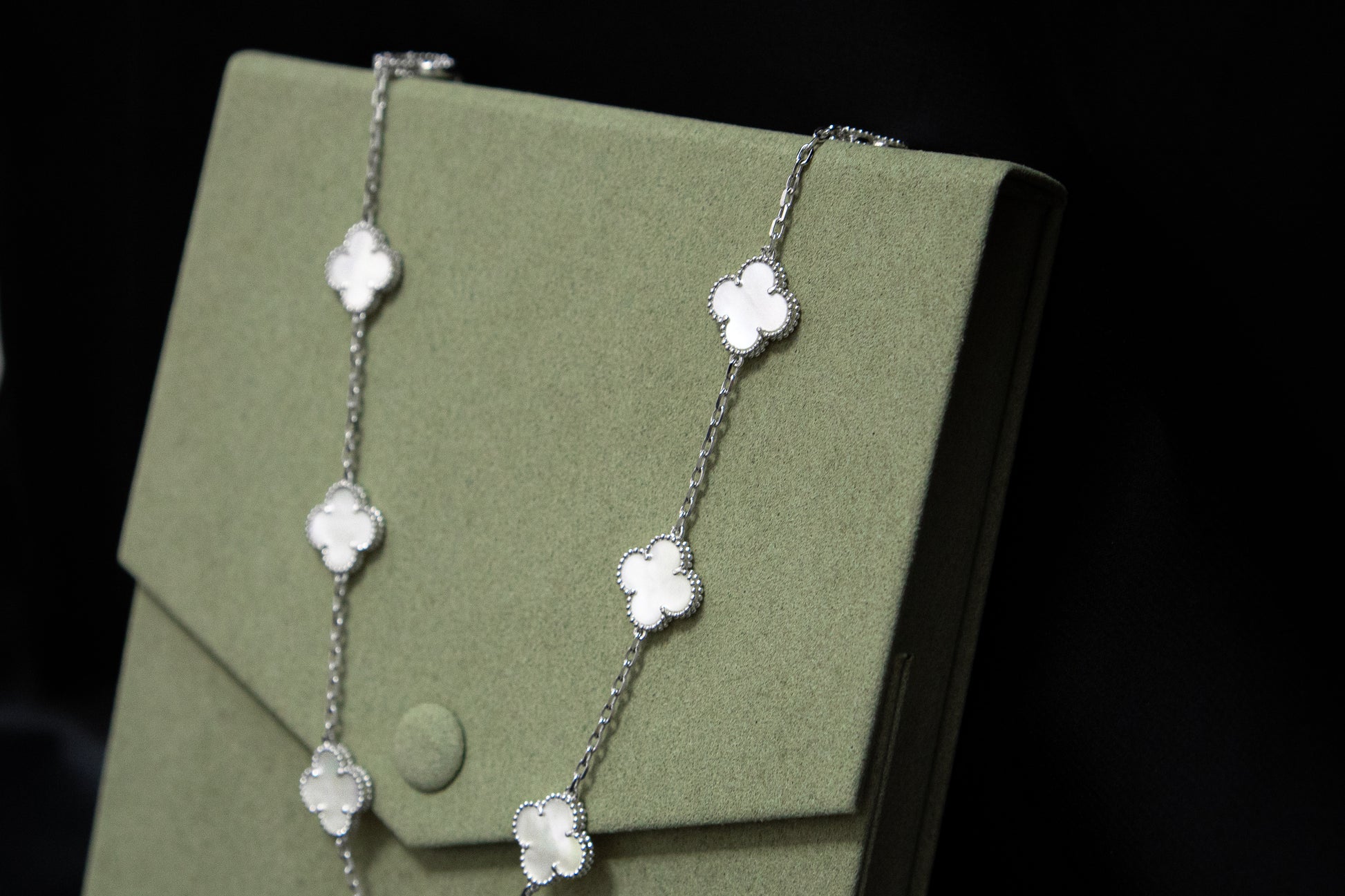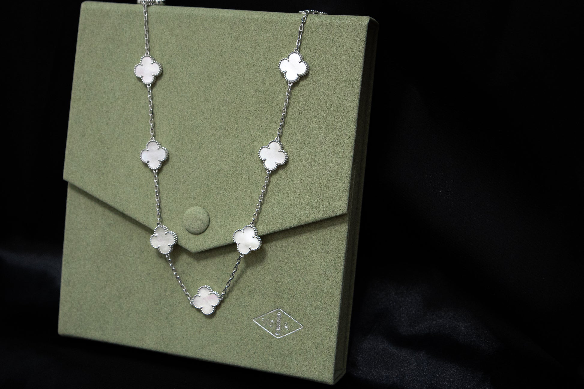 שרשרת תלתן כסופה אבן פנינה