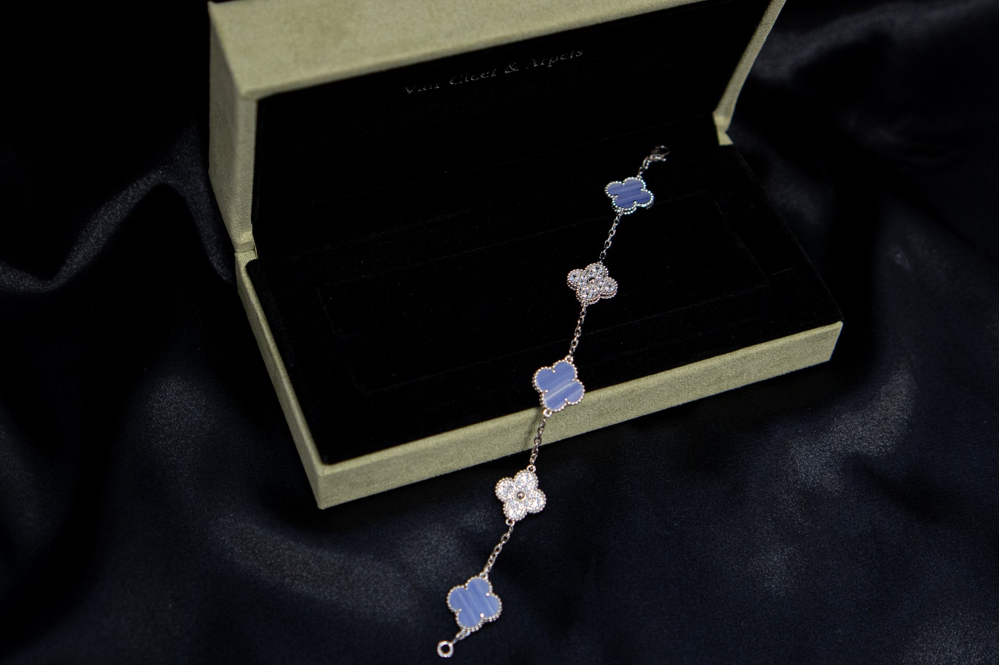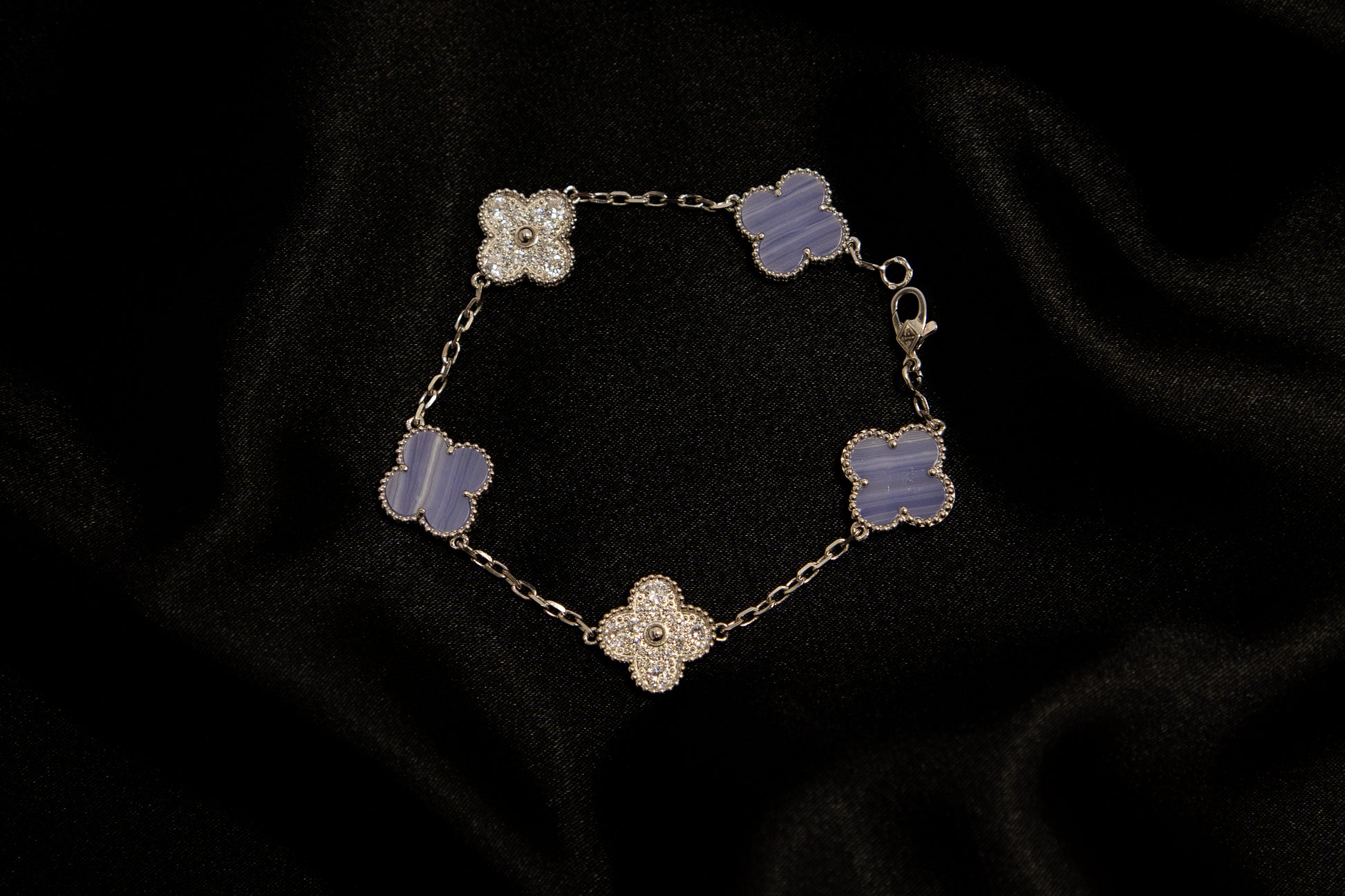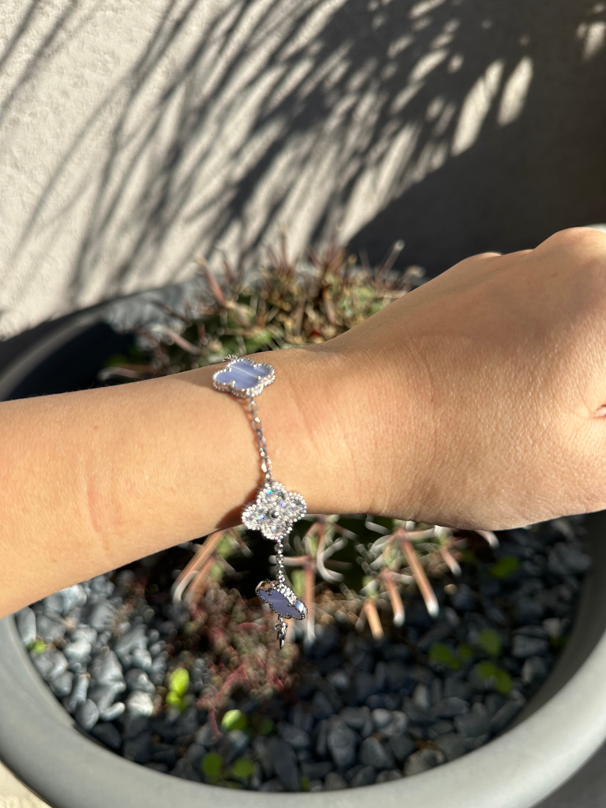 צמיד תלתן כסוף אבן סגולה משובץ