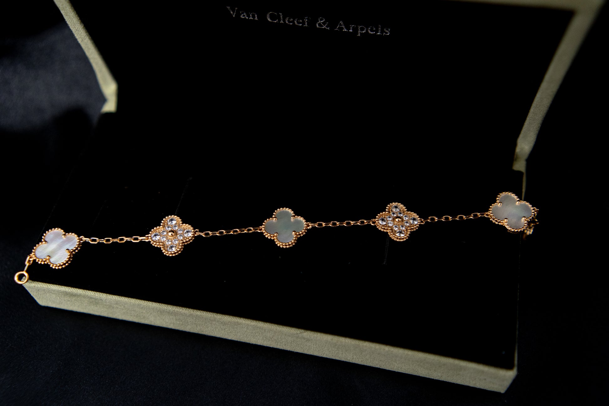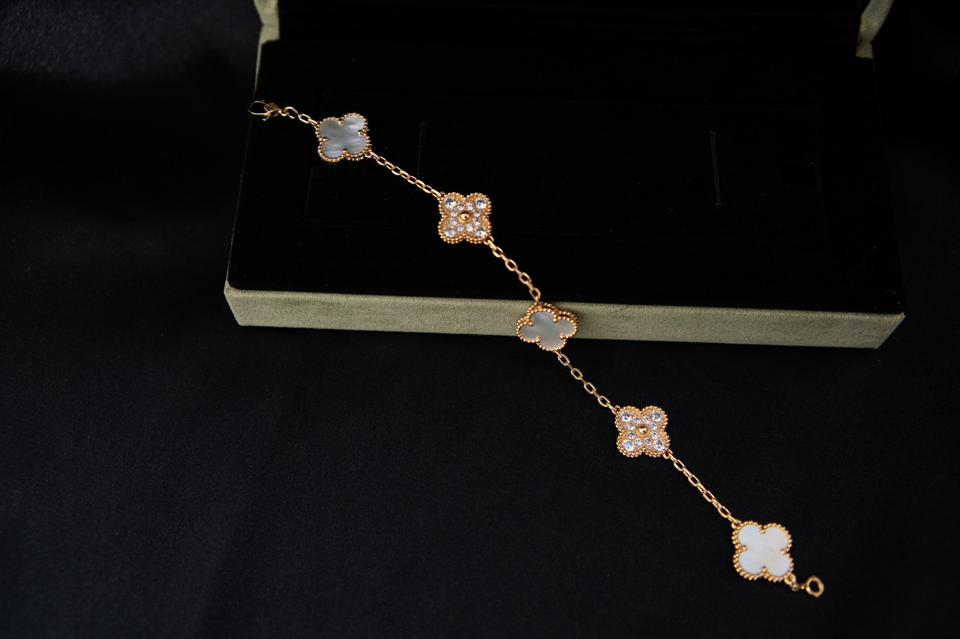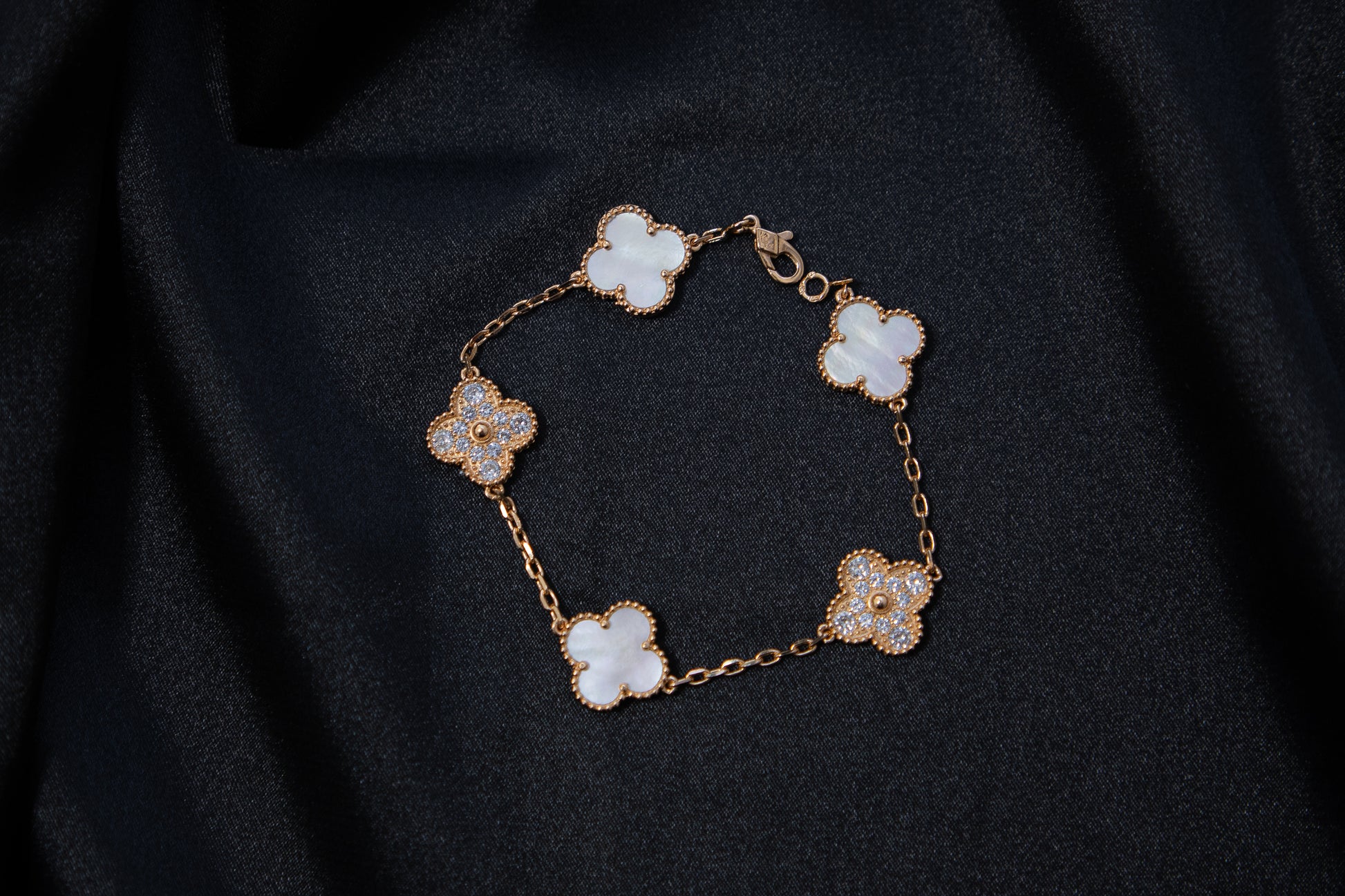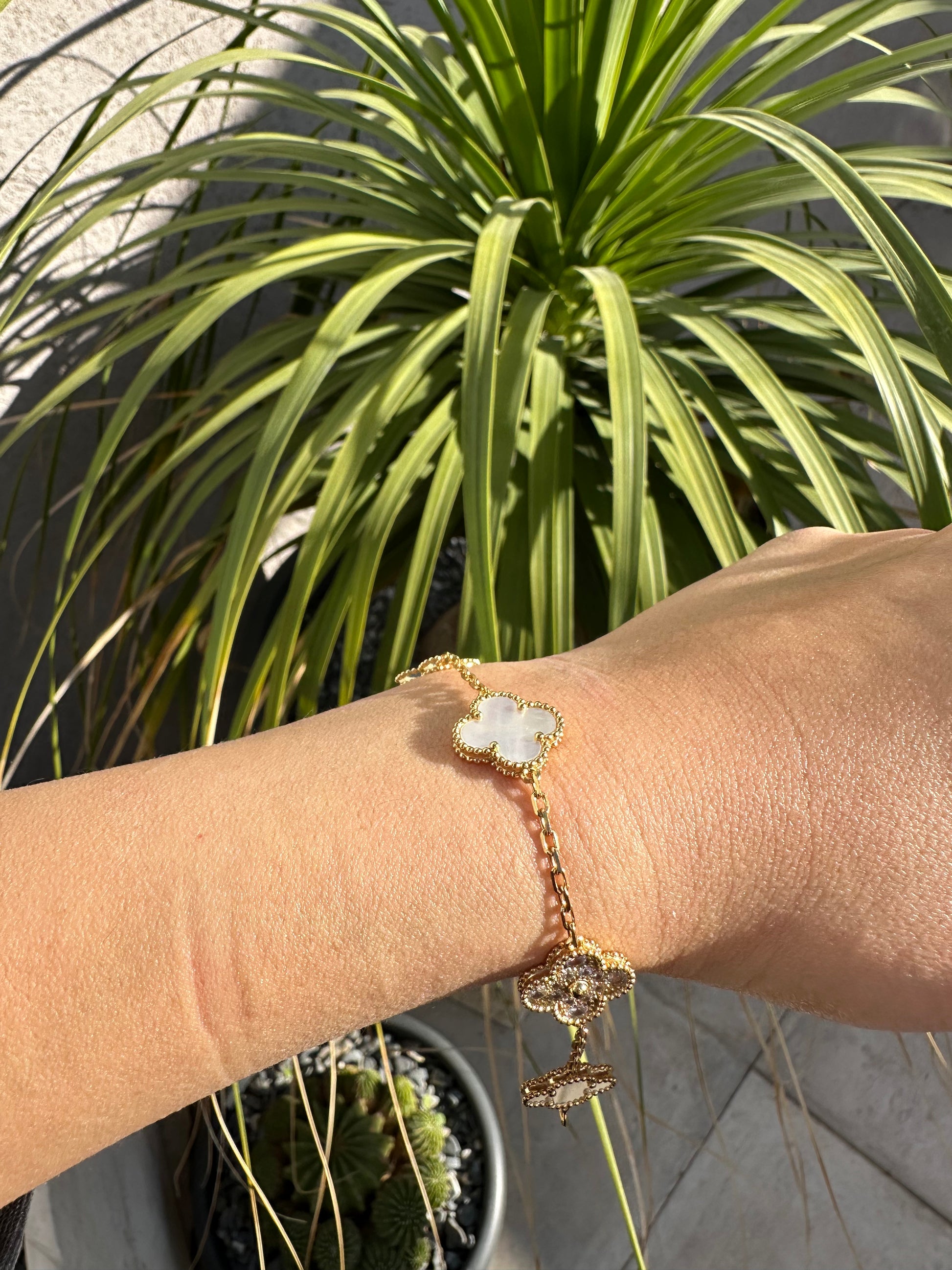 צמיד תלתן רוז גולד אבן פנינה משובץ