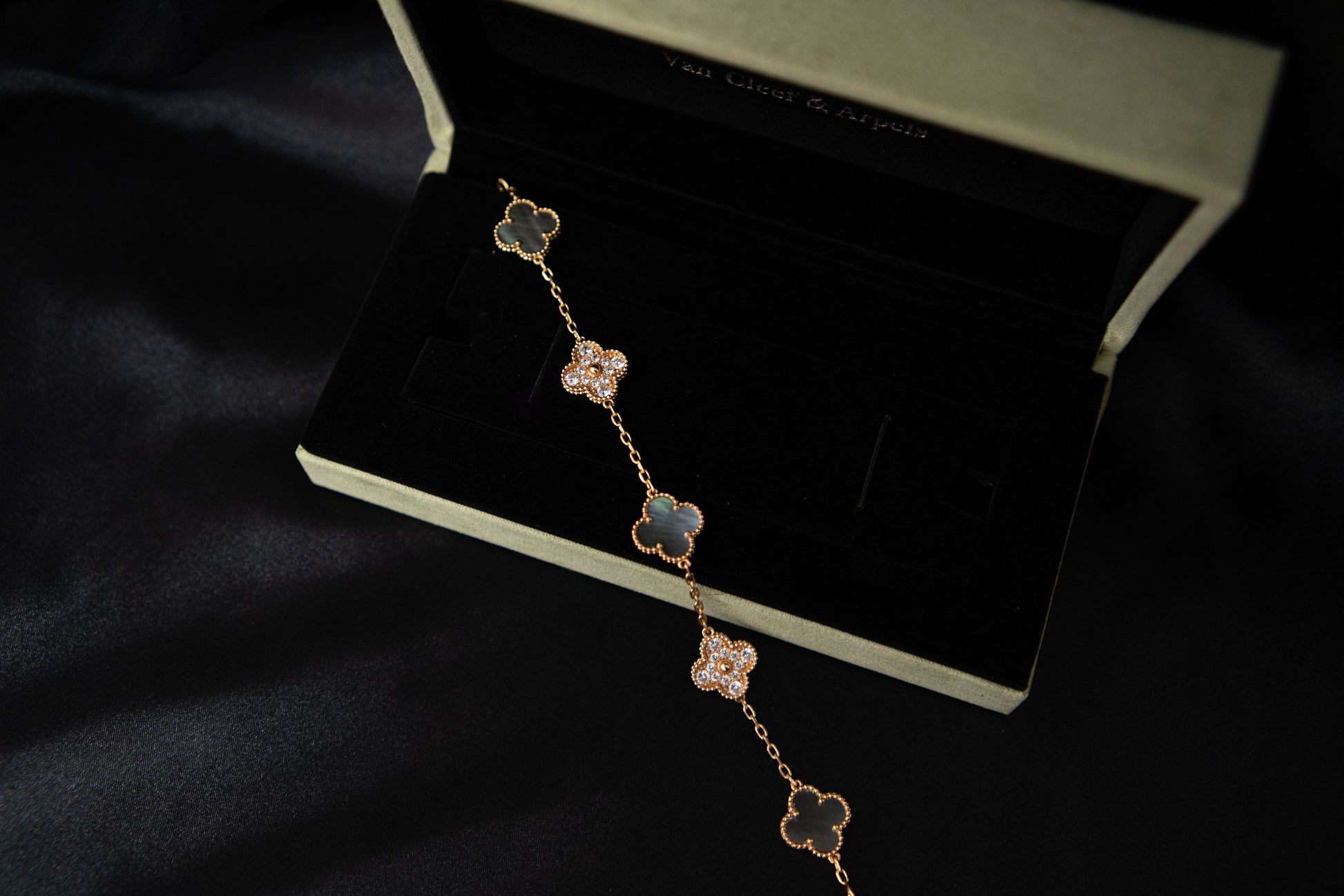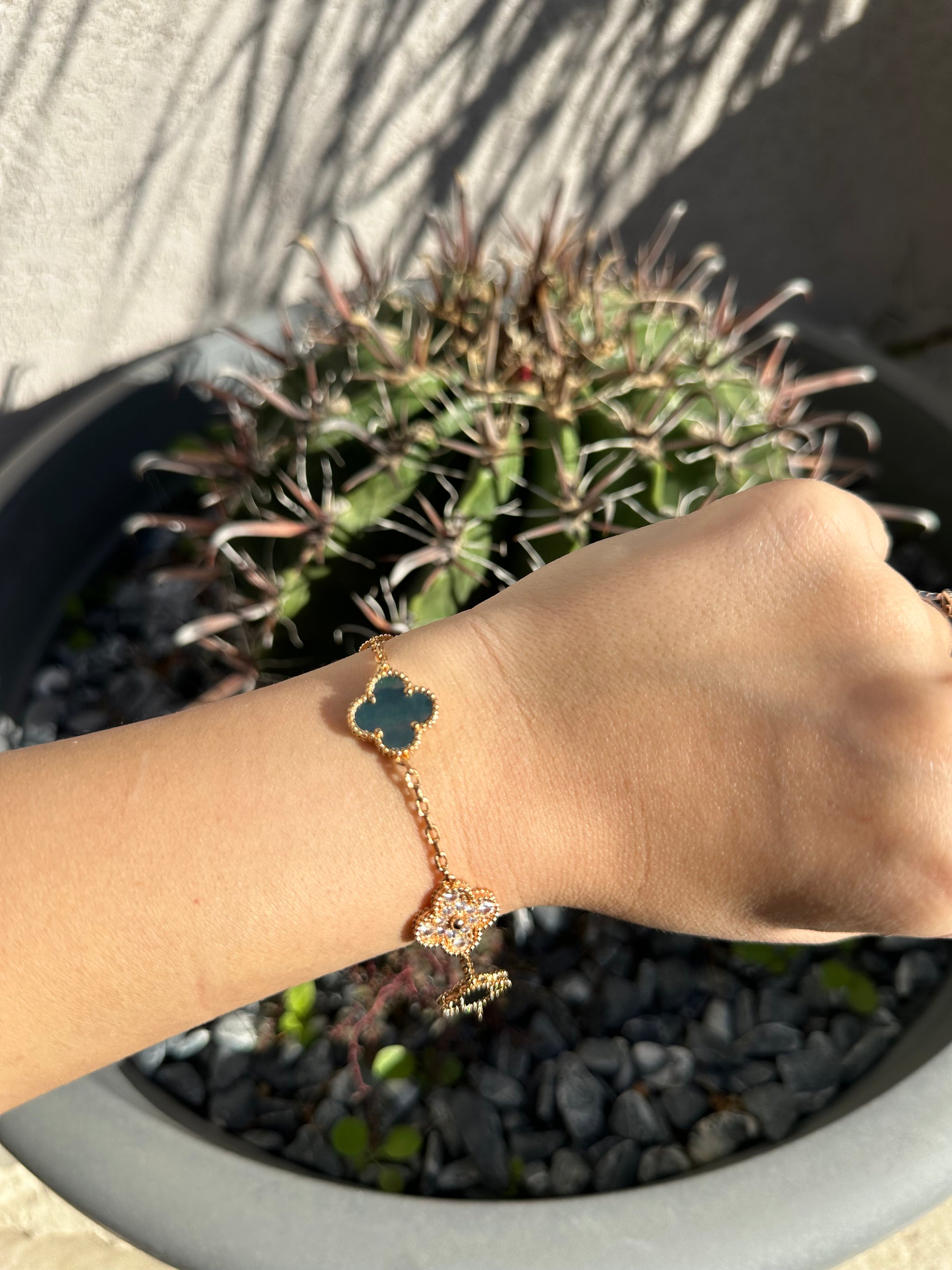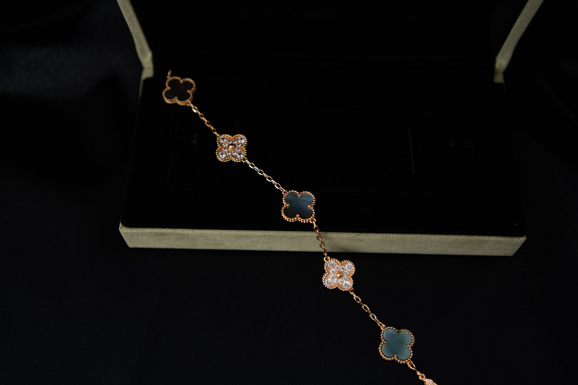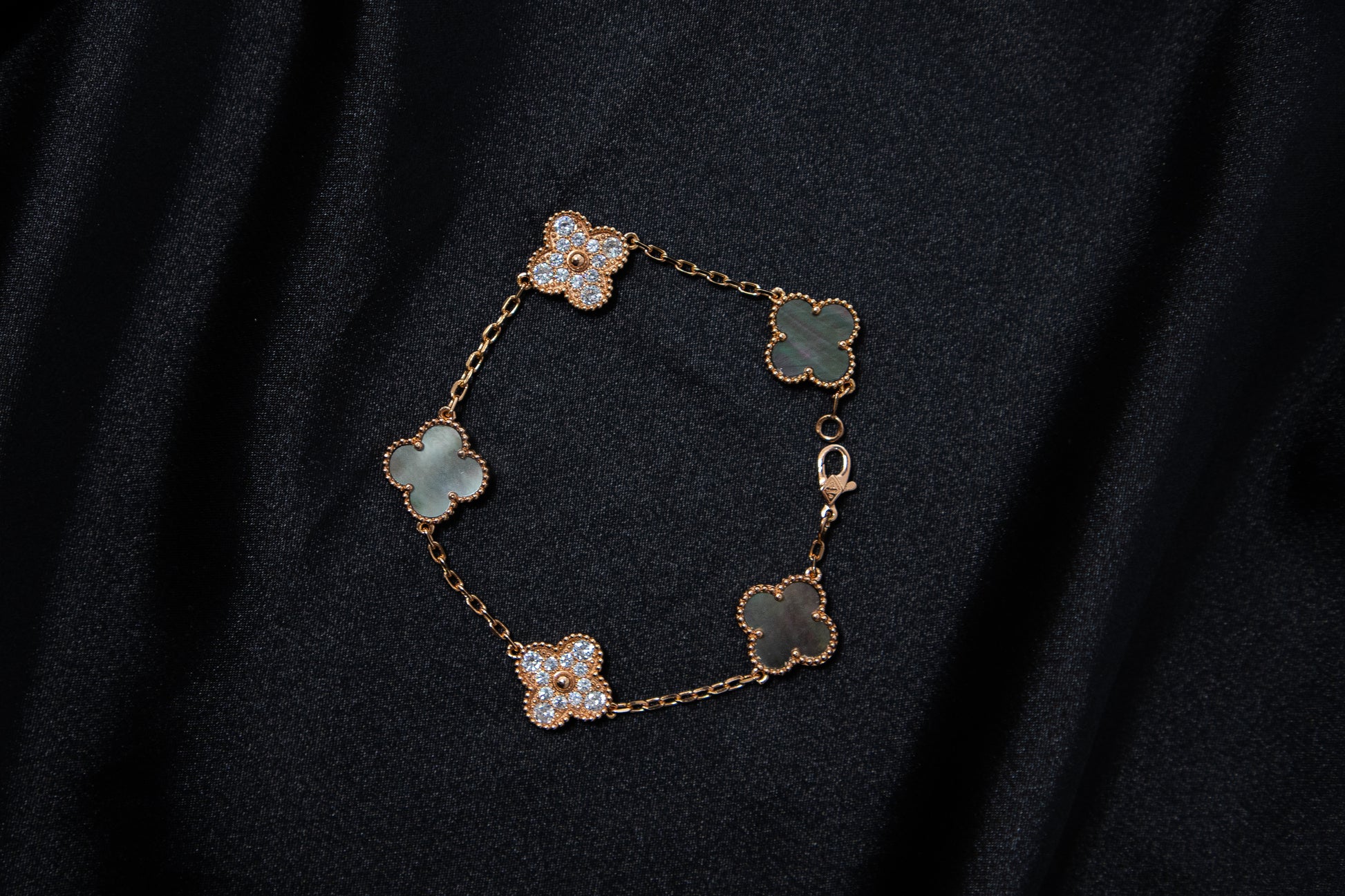צמיד תלתן רוז גולד אפור מטאלי משובץ